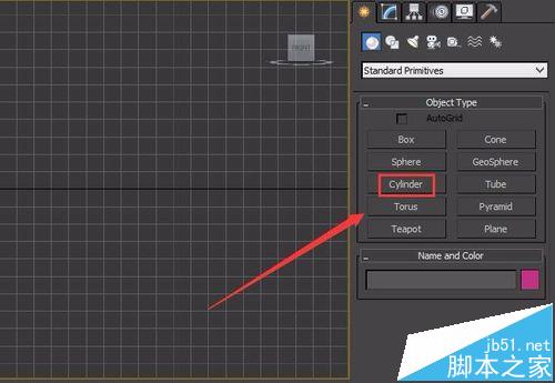 4、点击cylinder命令,在顶视图拖拽鼠标左键创建一个cylinder物体,如图所示: