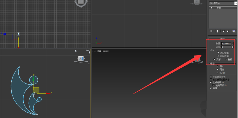 8、选择修改器卷栏下的“挤出”修改器,设置挤出的相关参数;