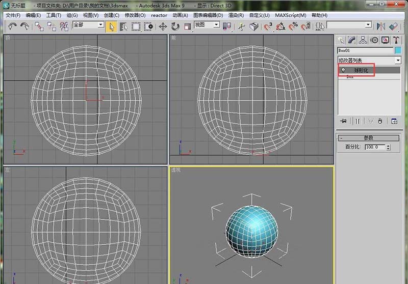 3、在修改器列表里加载一个球形化的修改器
