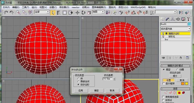 8、再次选择挤出工具,设置一个挤出高度