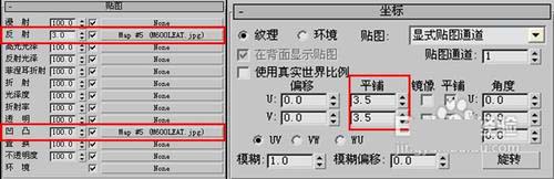 如果颜色给的不够恰当,就较难表现的很真实,所以我们这里给一个大众都较为常见的暗棕色作为皮革固有色,具体如图漫射颜色;反射值其实给一个黑白颜色即可,为了表现的更加真实,我们这里给它加了一张黑白的皮纹贴图,并注意调节其平铺值,不然纹理就可能看起来过大;同时一定要考虑到皮革的高光和整体反射都是比较模糊的,所以我们需要把高光光泽度和光泽度都需要往下调,如红框部分,以上只是一个参考值,不是绝对的。
