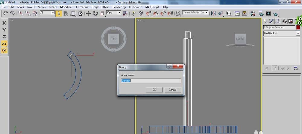 6、同时选择两个圆柱体,将他们成为一组,这样操作的目的是方便后面执行【Array】(阵列)操作,如下图所示。