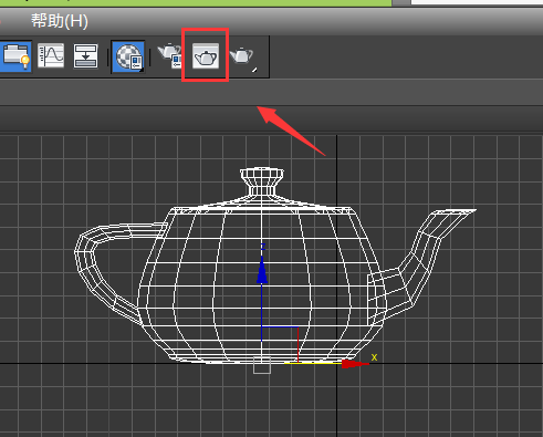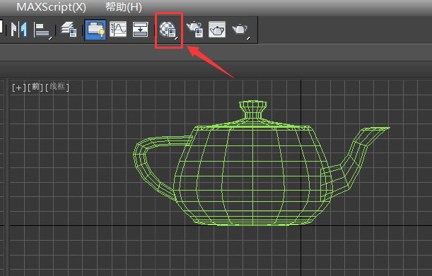4、选择茶壶模型,在上面找到材质编辑器选项,如图所示: