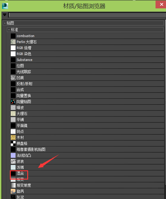 6、点击选择框在弹出的对话框内找到混合选项,如图所示: