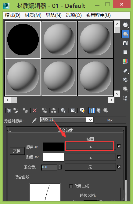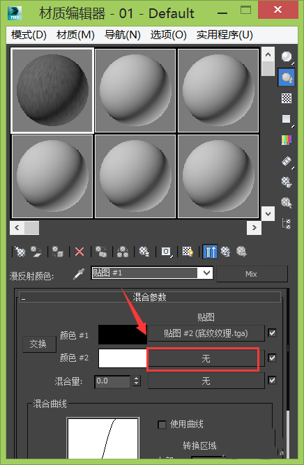7、点击混合选项,返回到上一层级,再找到颜色#1选项后的贴图选择框,如图所示: