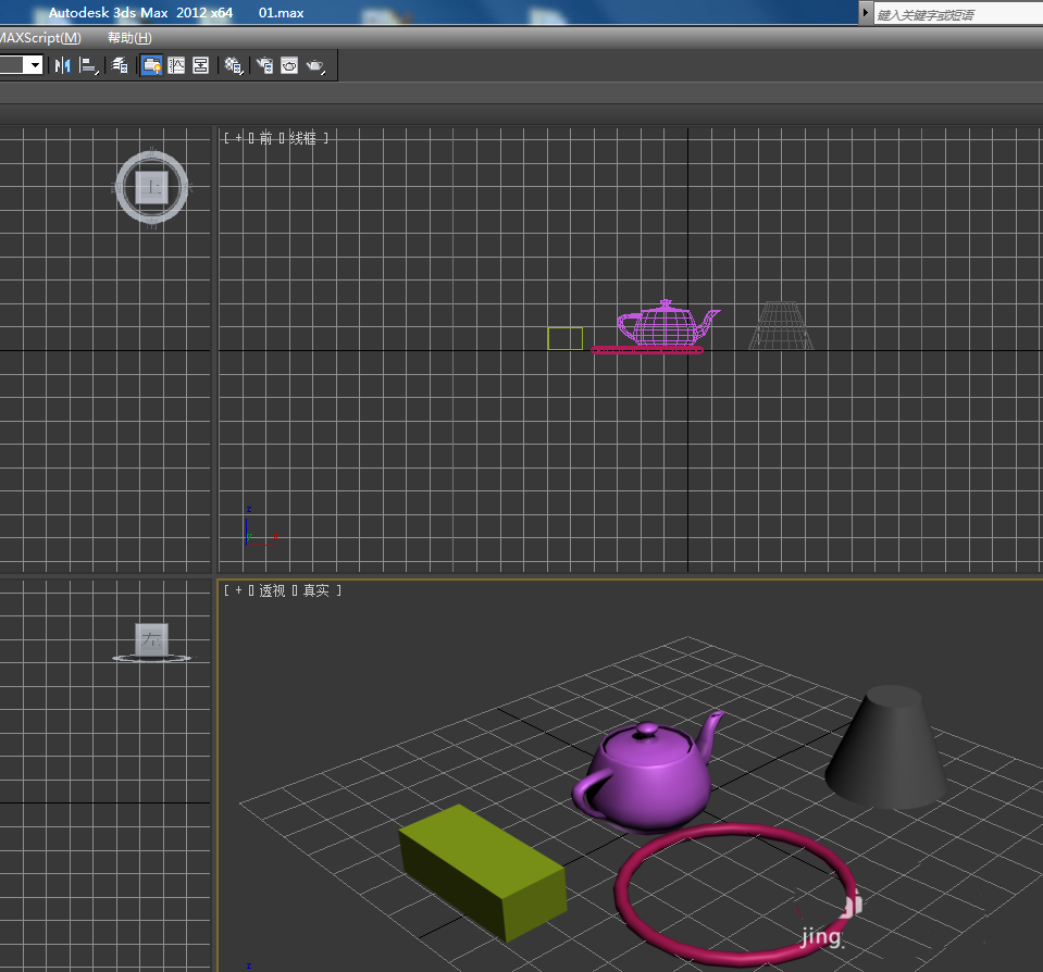 3、在3DMAX页面的顶端,我们可以看到我们保存的建模名称:“01”,