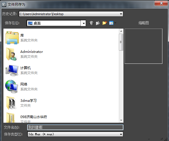 5、我们这时可将模型进行另存为操作,弹出另存为窗口,将保存路径设置为桌面,起名为“我的建模”