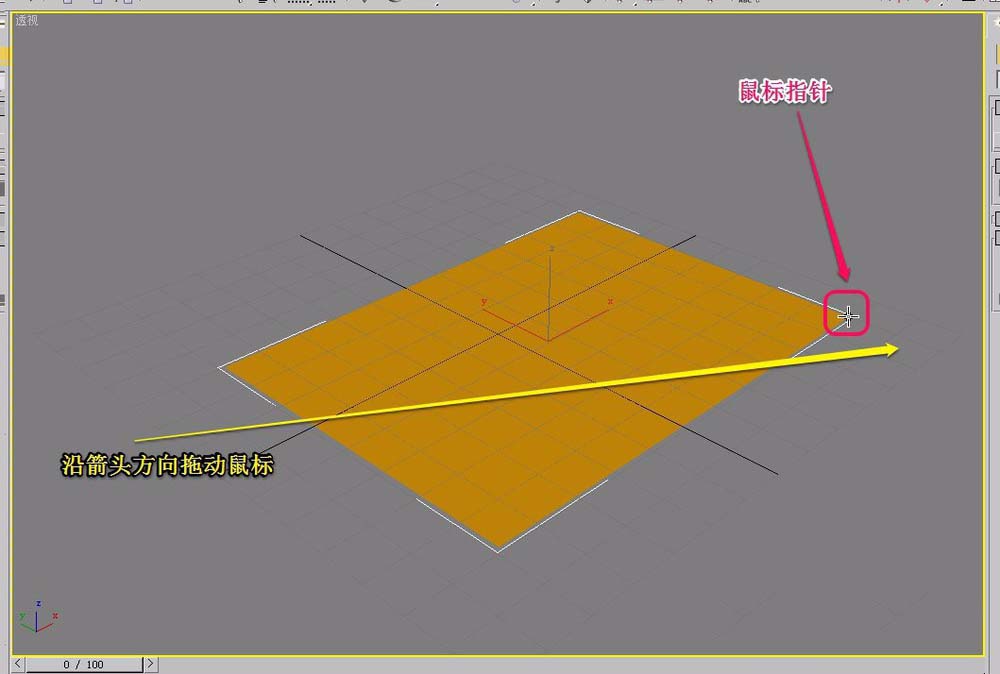 5、沿着黄色箭头方向,按住鼠标键拖动创建出三角形面片。