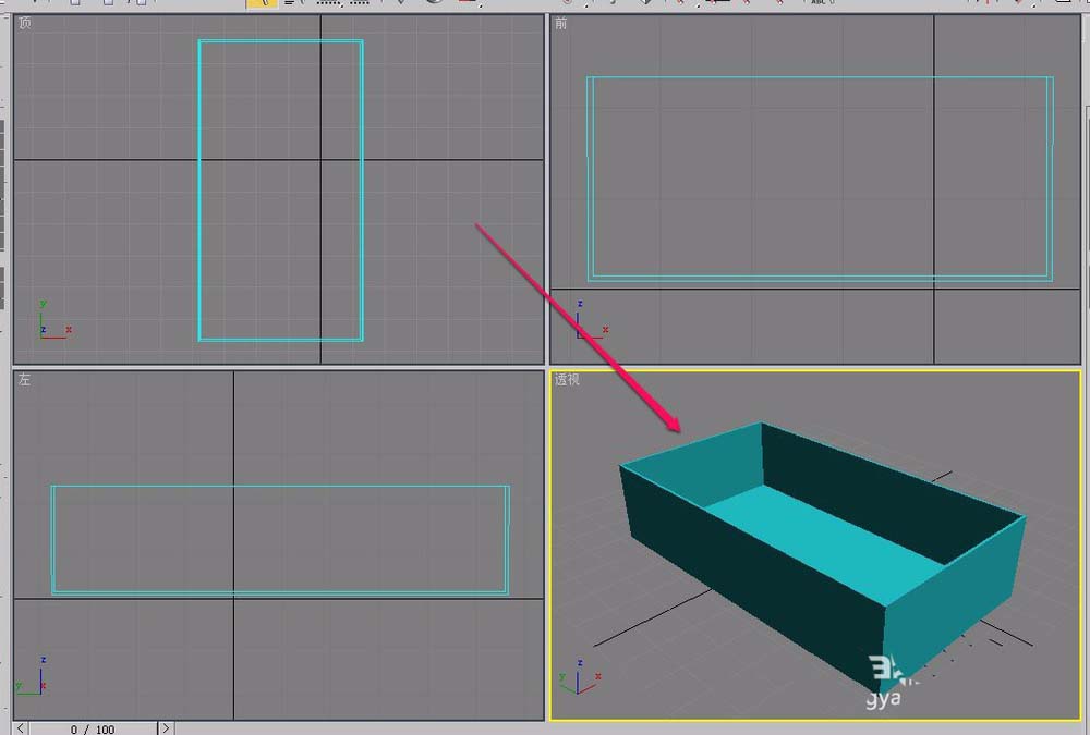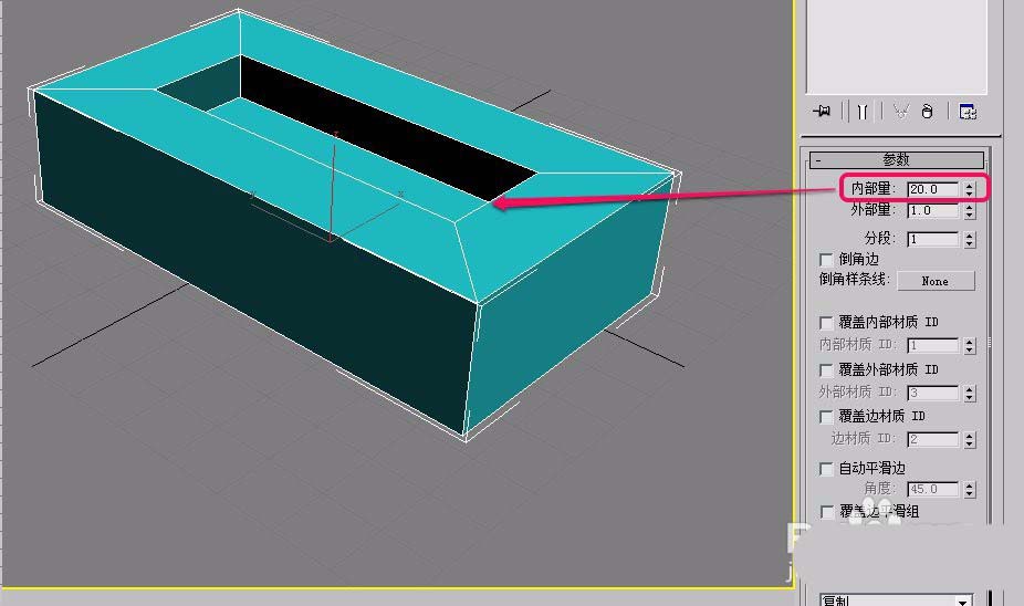 1、打开3ds max软件,创建一个应用了“壳”变形器的长方体(长方体上表面已经去掉)。