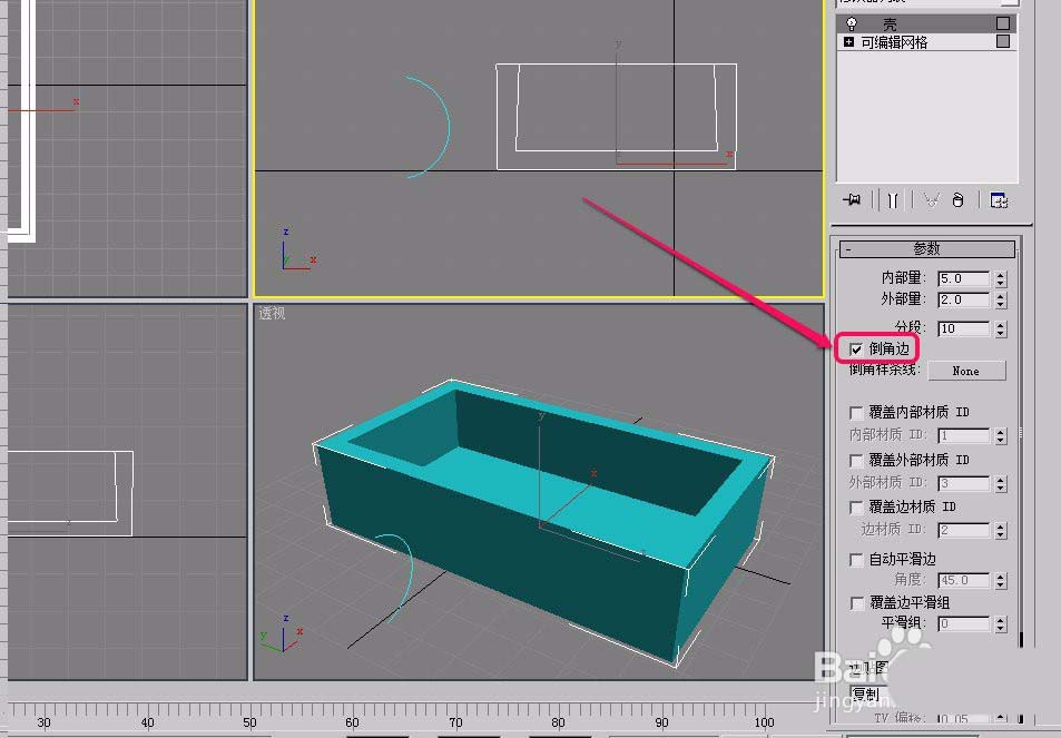 15、可以看到,“壳”的倒角边截面变成了我们自定义的样条线样式。