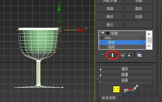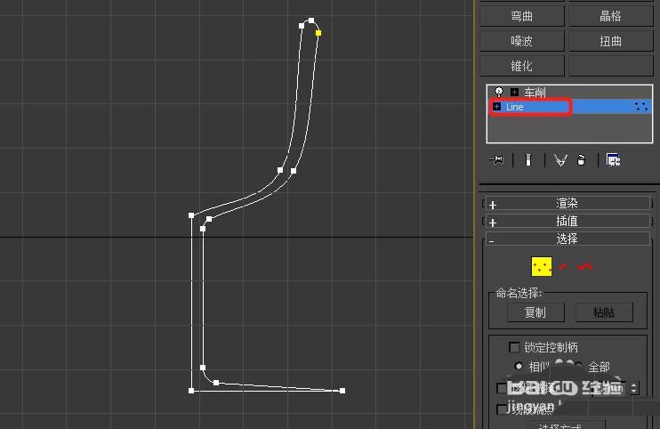 如下图我用二维图形创建线段,后加“车削”修改器;那么物体就是由二维图形与车削所形成的一个堆栈物体;如果我们去点击堆栈中的Line,不开启“显示最终结果开/关切换”场景物体显示的就是图形线段;而点击开启“显示最终结果开/关切换”场景物体显示的就是最终物体堆栈(车削)效果;此功能便于我们根据最终效果来修改某修改器。