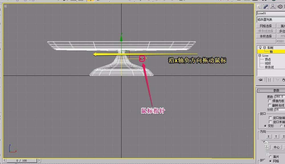 8、使用鼠标拖动图形坐标的轴心,沿着x轴负方向移动一段距离,出现如图所示的托盘形状。