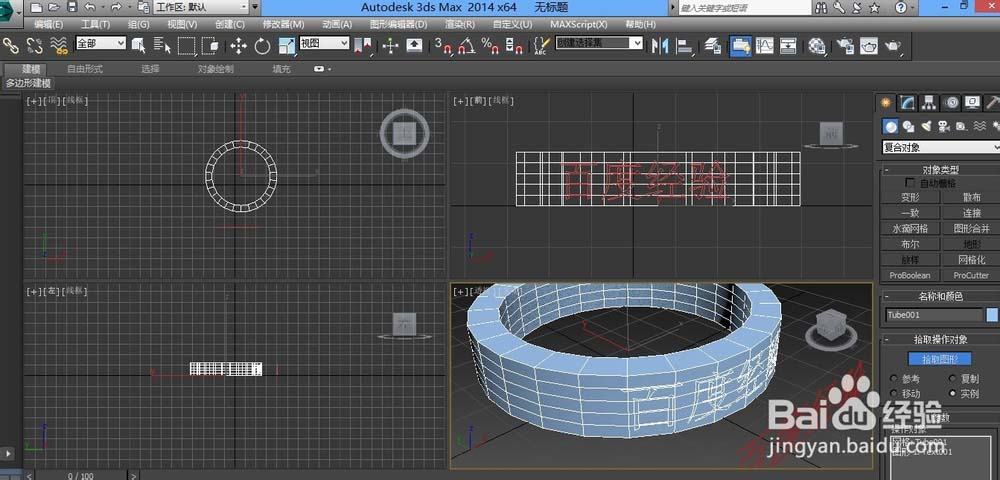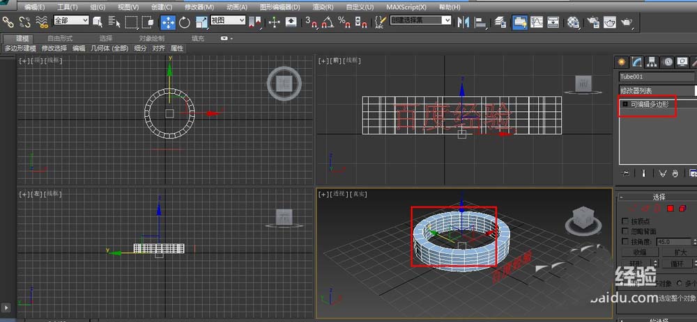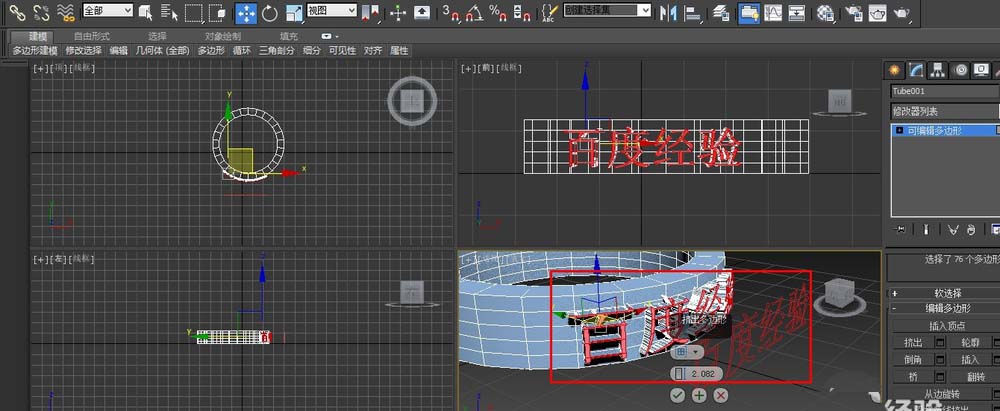 8、点击下面的挤出,可以看到,在管状体上面挤出了文字