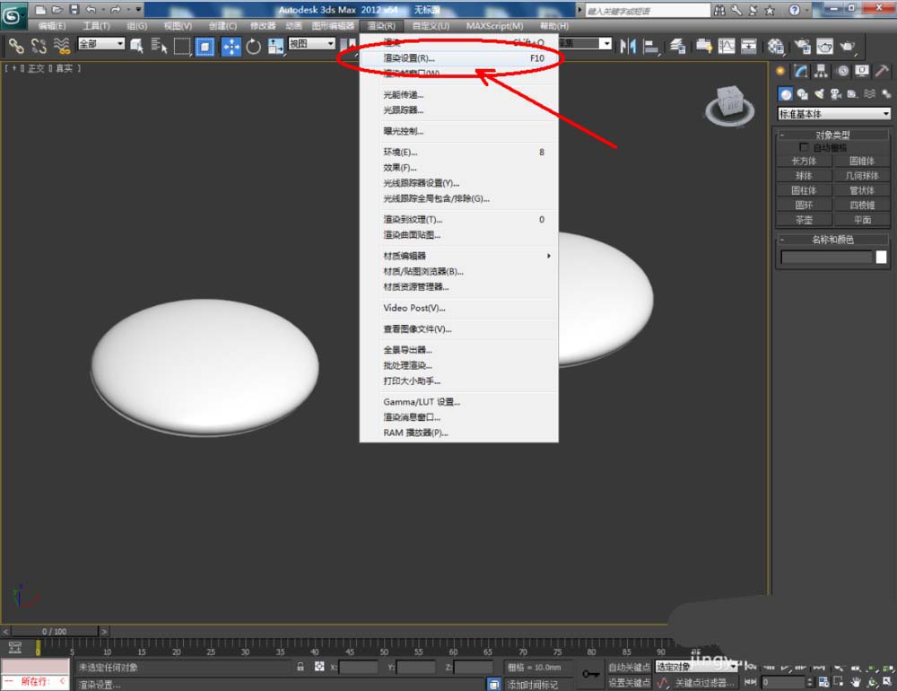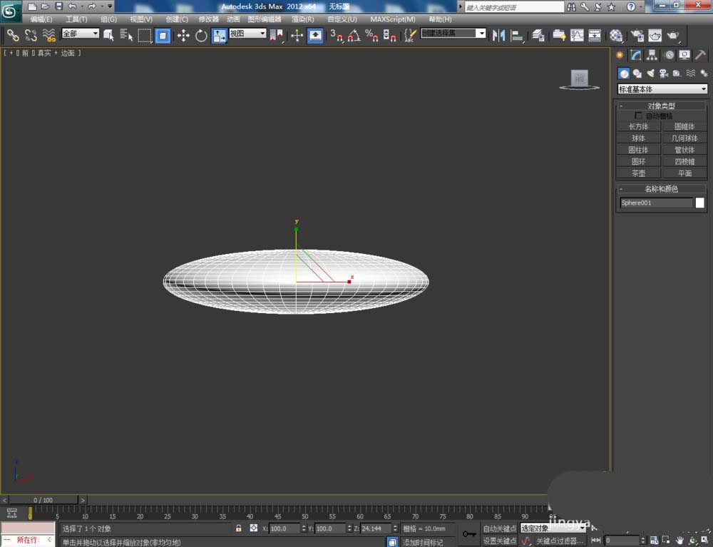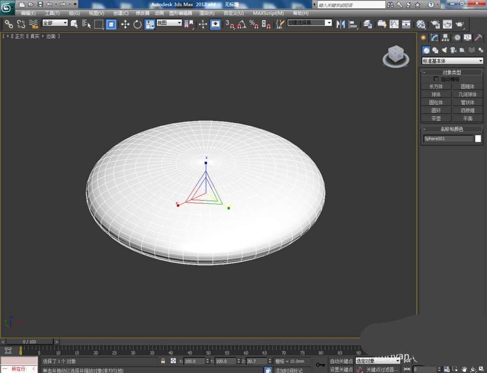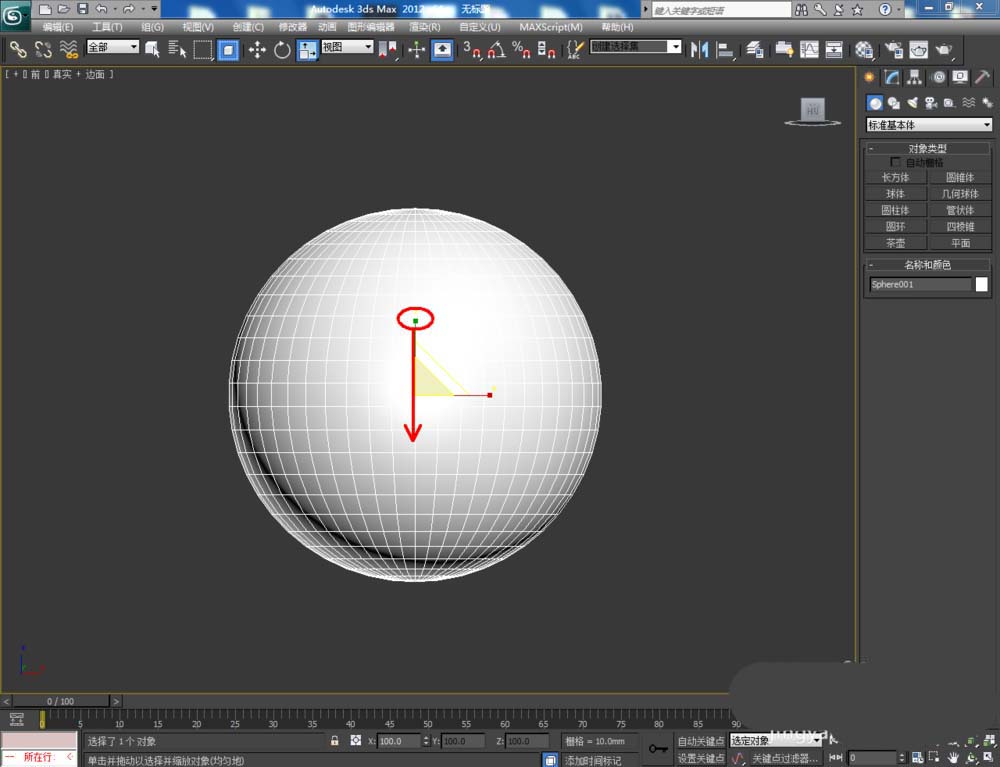 1、打开3Dmax2012软件,点击【创建】-【几何体】-【球体】,在作图区域绘制一个球体模型并按图示设置好球体模型的各个参数。选中模型,点击【对象颜色】将模型的对象颜色设置为:白色;