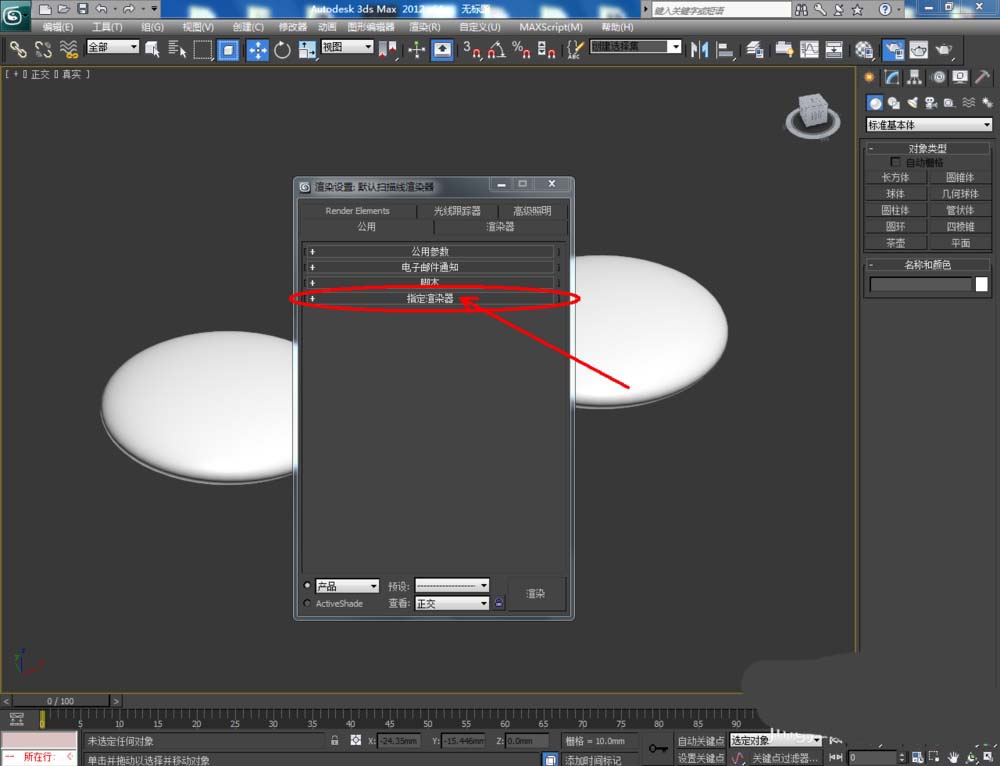 3、点击【渲染】-【渲染设置】,弹出渲染设置框。点击【指定渲染器】-产品级【…】-【Vary-Adv2.10.01】调出vary渲染器(如图所示);