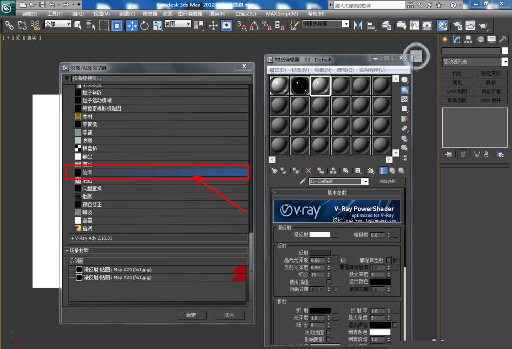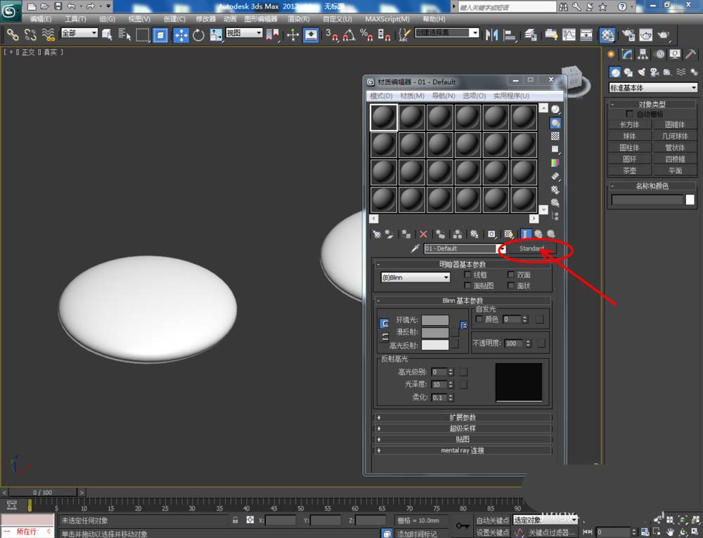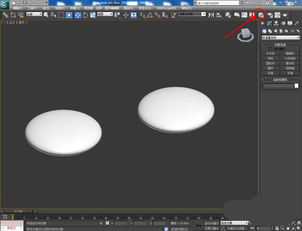 6、点击【材质编辑器】,按图示设置好棋盘材质并为其添张棋盘贴图,点击【将材质指定给对象】,完成模型材质的附加。最后,点击【渲染】将制作好的围棋模型渲染出图即可。