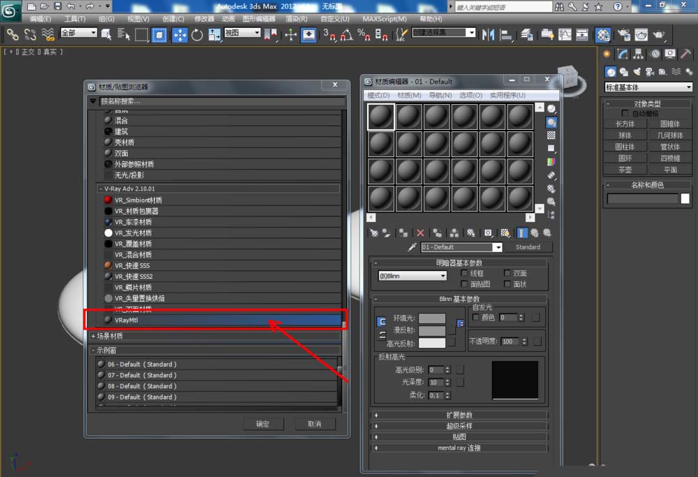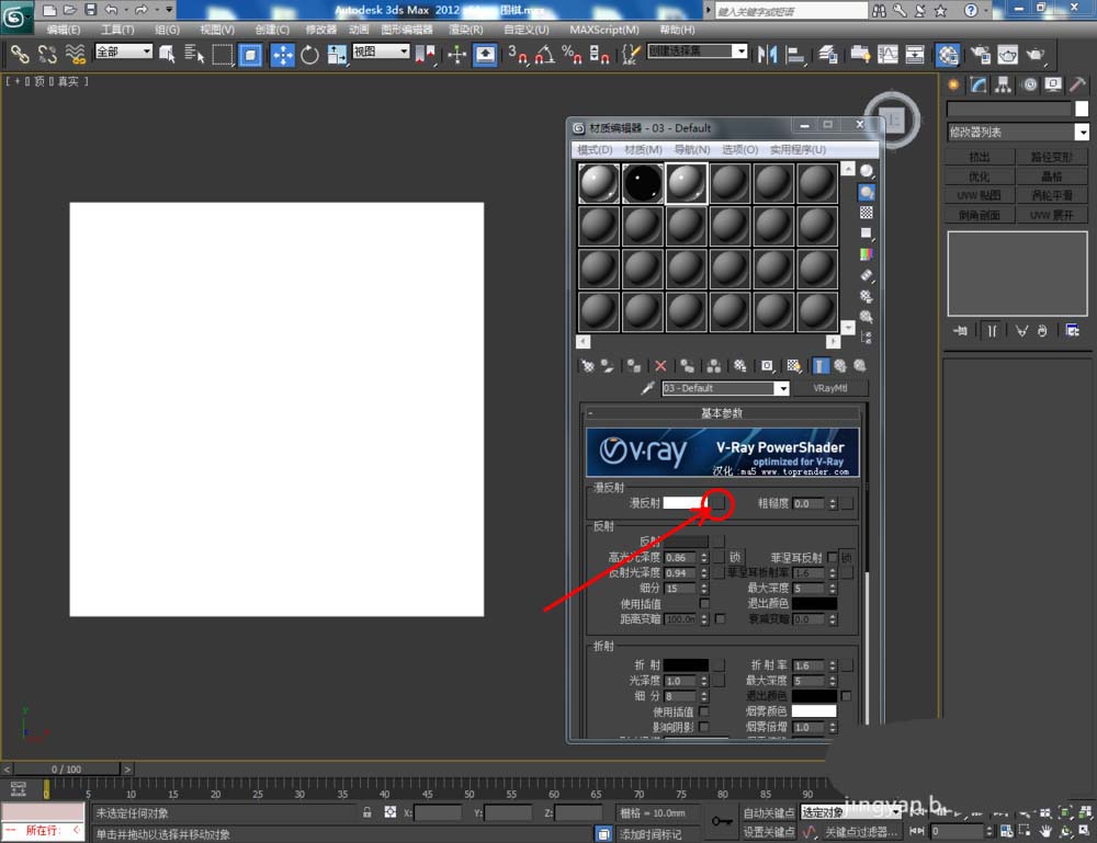 4、点击【材质编辑器】,弹出材质编辑器设置栏,按图示参数设置一个抛光白色石子材质和一个抛光黑色石子材质,并将其附加给棋子模型(如图所示);