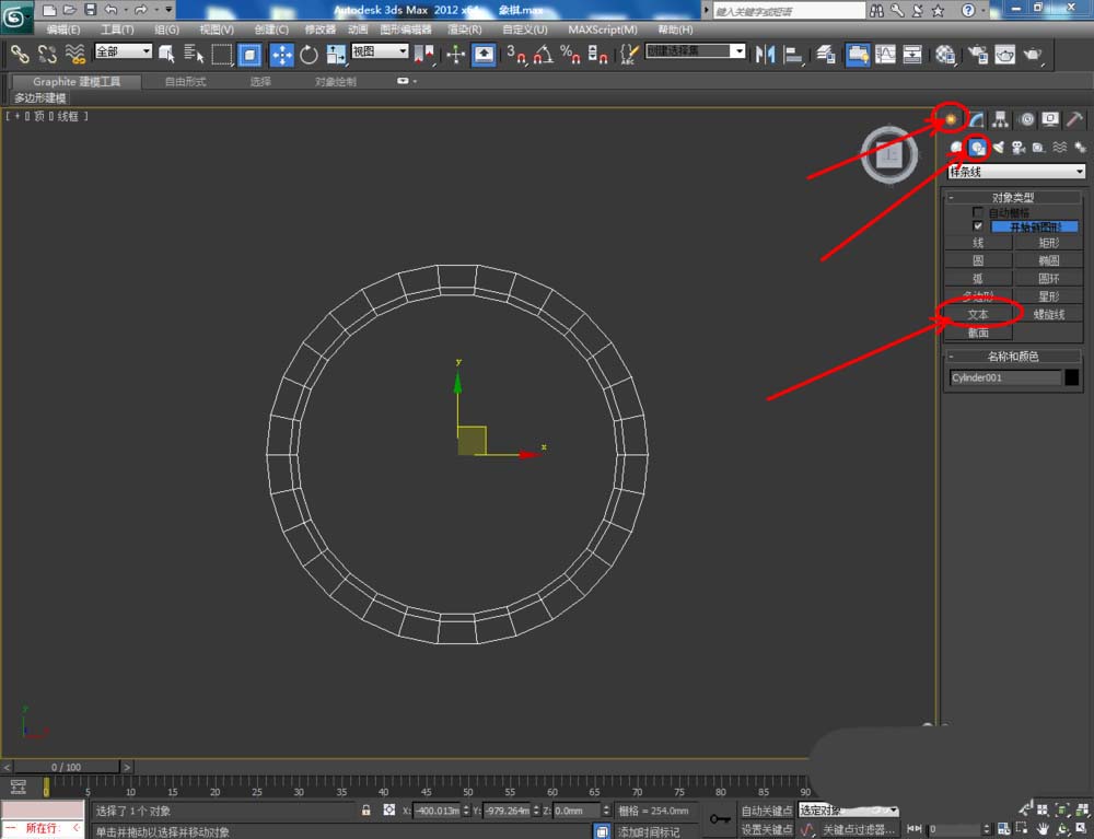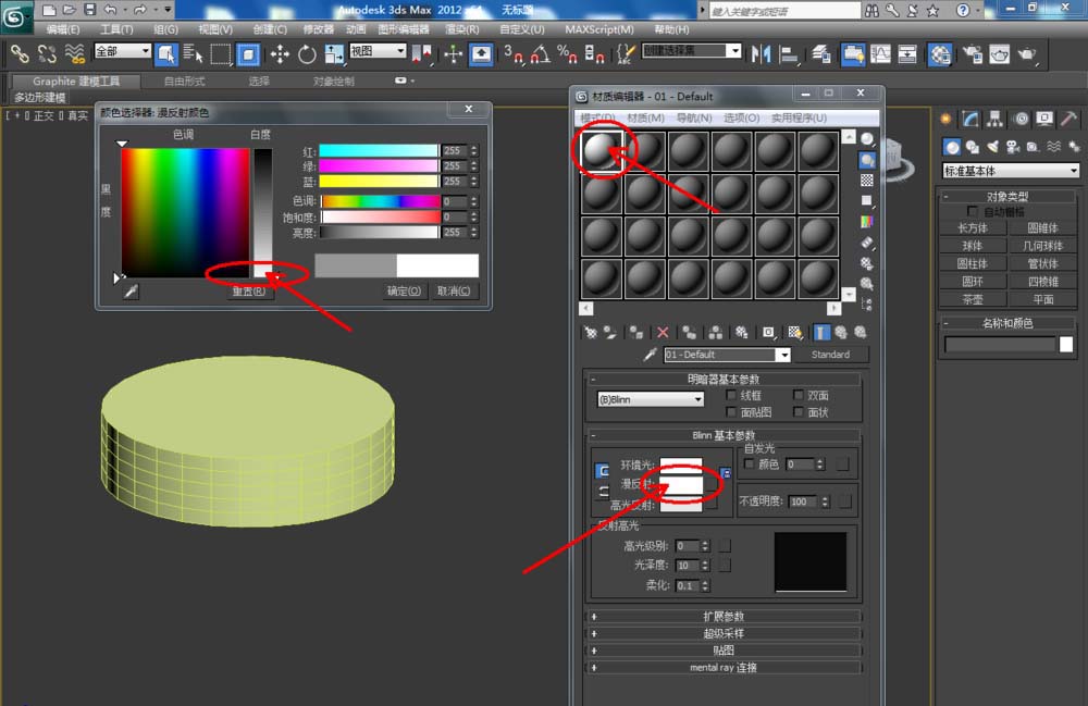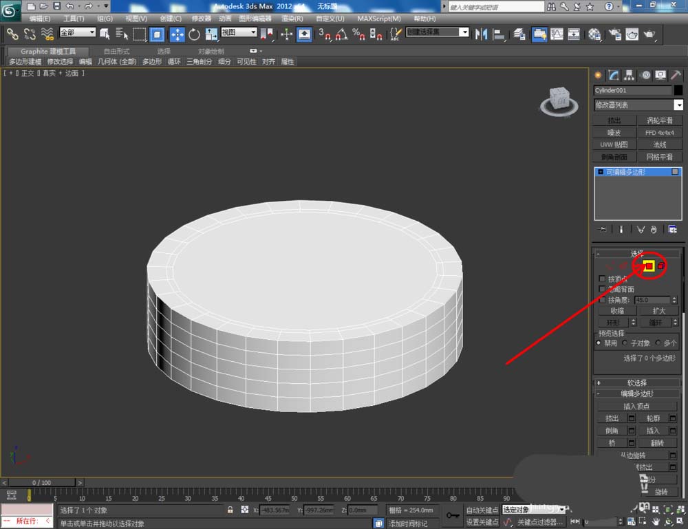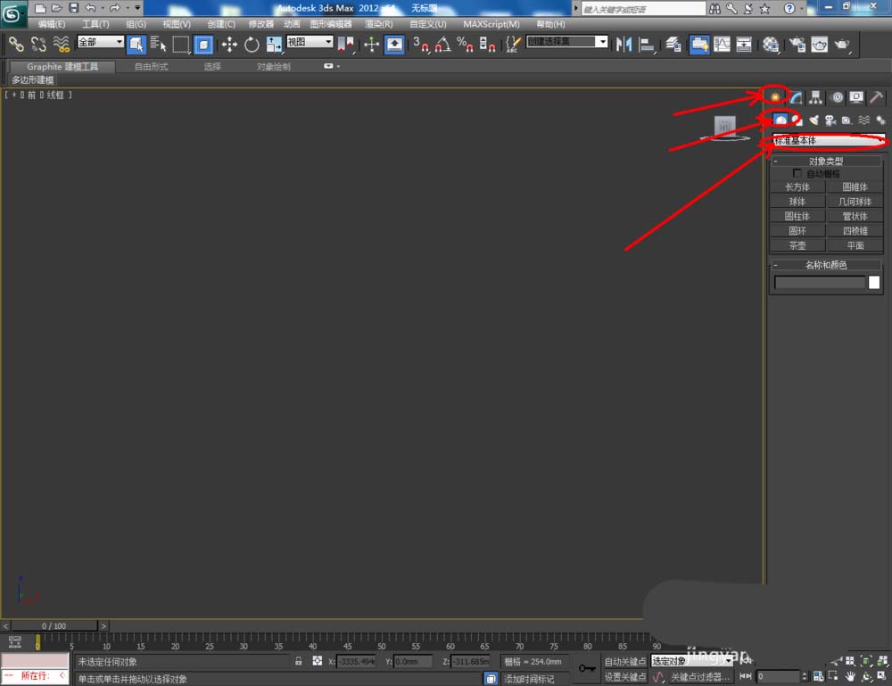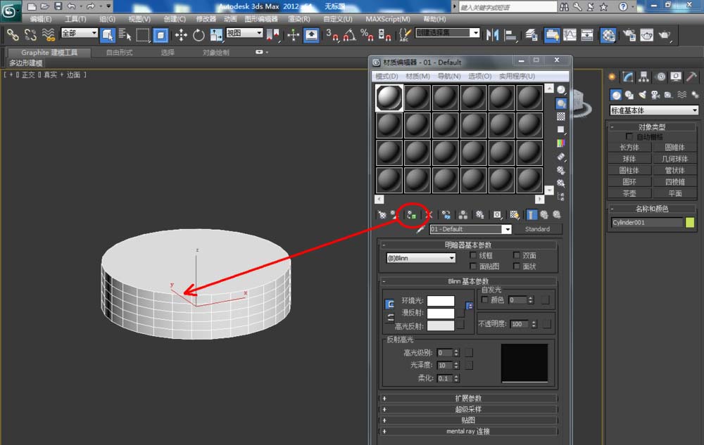 1、打开3Dmax2012软件,点击【创建】-【几何体】-【标准基本体】-【圆柱体】,在作图区域绘制一个圆柱体模型并按图示设置好圆柱体的各个参数;