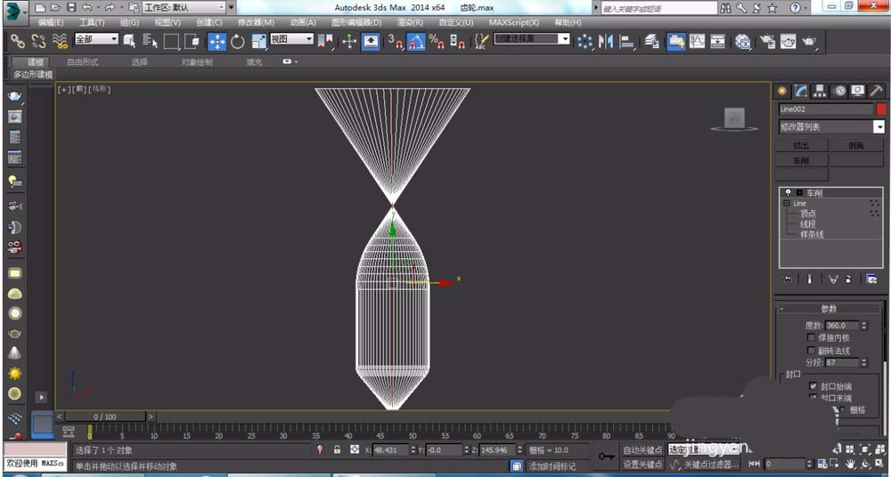 3、选择这个可编辑样条线,点击修改面板中的车削修改器,进行车削命令,如下面图纸所示。
