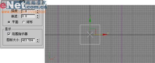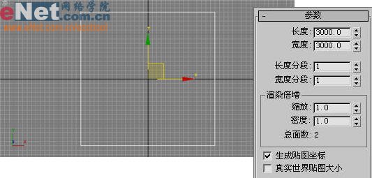 1、启动3dmax9.0,点击“创建”命令面板中的“几何体”按钮,进入其创建面板,点击“平面”按钮,在顶部视图中绘制一平面,定义为地面,结合着左视图将其调整到x为0、y为0、z为-10的位置,如图1所示。