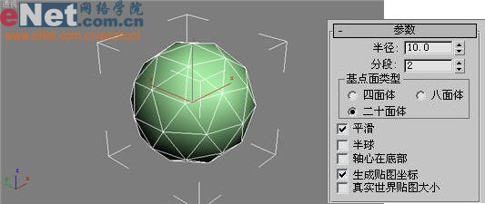 6、点击“创建”命令面板中的“几何体”按钮,在下拉列表中选择“标准基本体”项,进入创建面板,单击“几何球体”按钮,在视图中绘制一球体GeoSphere01,作为冰雹的模型,名称为冰雹,如图6所示。