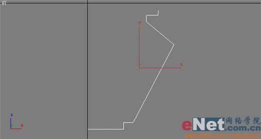 1、启动3dmax9.0,点击“创建”命令面板中的“图形”按钮,在其创建面板中单击“线”按钮,在前视图中拖动鼠标绘制一线条Line01,如图1所示。