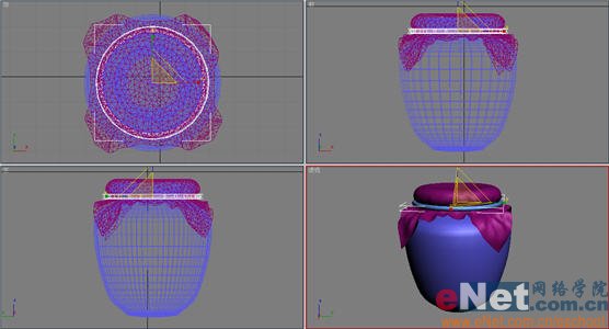 将圆环缩放到扎紧坛口状态,按下“设置关键点”按钮,最后关闭“设置关键点”。如图9所示。