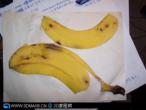 挑了一个香蕉皮,摊在纸上,用我的DC拍了下来,用它来做参考,制作我想要的贴图。