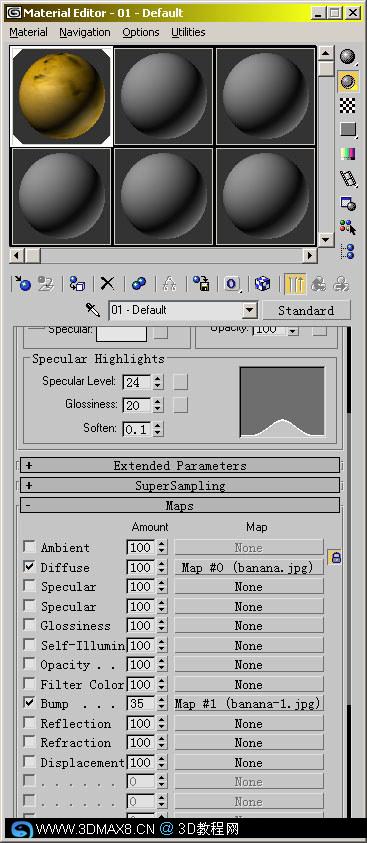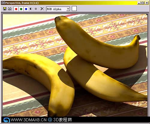 可以看到在贴图中我使用了凹凸贴图.真实的香蕉如果少了凹途感的话,会变的象模型,象塑料做的.