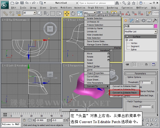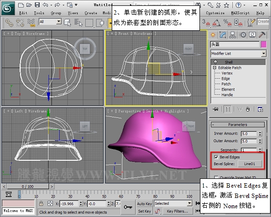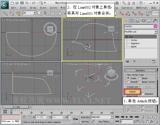 (8)选择Line001对象,并将该对象与Line002对象合并。现在头盔的大体框架就完成了。
