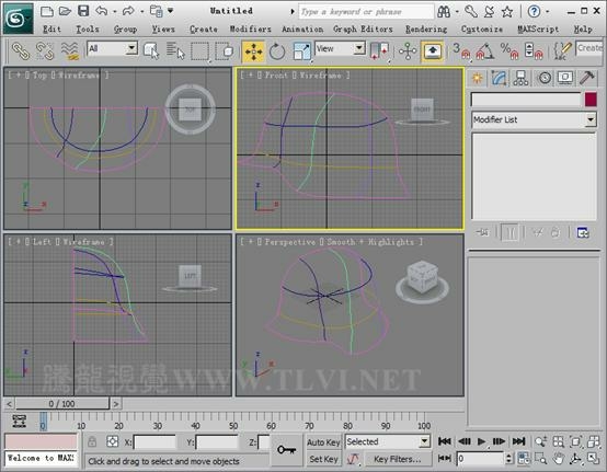 在本实例中,将指导各位网友创建头盔模型,头盔是流线型的,虽然和球体很接近,但还是有一定的差别,使用普通的建模方法,很难使其在保持造型准确的情况下,又能实现其表面完美的光滑效果,所以在本实例中将使用面片建模的方法来完成头盔的制作。本实例具体的制作方法为首先创建头盔拓扑线,然后使用Surface修改器将拓扑线生成面片,最后编辑面片对象,完成模型的制作。面片对象能够使用控制点的框架和连接切线来定义曲面,所以能够更为快捷准确地创建较为平滑的曲面,Surface修改器基于样条线网络的轮廓生成面片曲面,会在三面体或四面体的交织样条线分段的任何地方创建面片,通过本实例,可以使各位网友了解面片建模的基本操作方法。在素材文件内,为头盔拓扑线文件和完成后的模型文件,读者可以下载素材文件作为建模的参照。