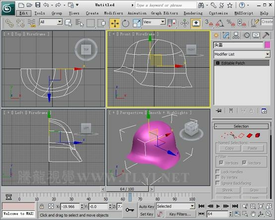(19)进入“头盔”对象的Vertex子对象层,选择顶点。