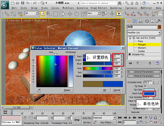 (15)将Root Color颜色显示窗内的颜色设置为深蓝色。