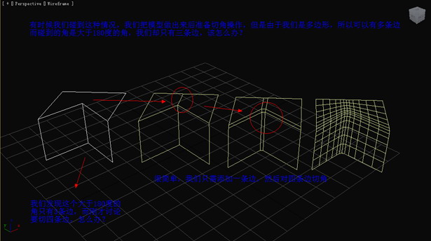 有时候我们碰到这种情况,我们把模型做出来后准备切角操作,但是由于我们是多边形,所以可以有多条边而碰到的角是大于180度的角,我们却只有三条边,该怎么办?