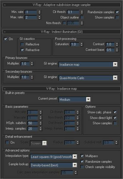 我并没有使用很高的精度来计算GI,因为我知道,我所需要的所有细节都可以用Mentalray的AO来得到。Vray所需要做的,只是计算出正确的光影。