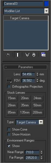 然后选中摄影机,勾选Environment Ranges下面的Show选项,并把Near Range跟Far Range值调整到可以概括到整个场景。