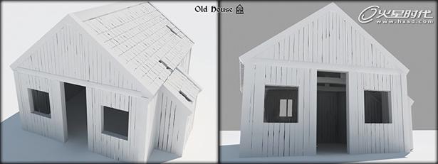 注意:每一片木板,这个木质材料是独立制作的;屋顶上的瓦片也是独立模型。在多边形计算中这不算是最好的想法,但是我的机器可以很好的处理它,这样我就可以创造一个真实环境的房子了。