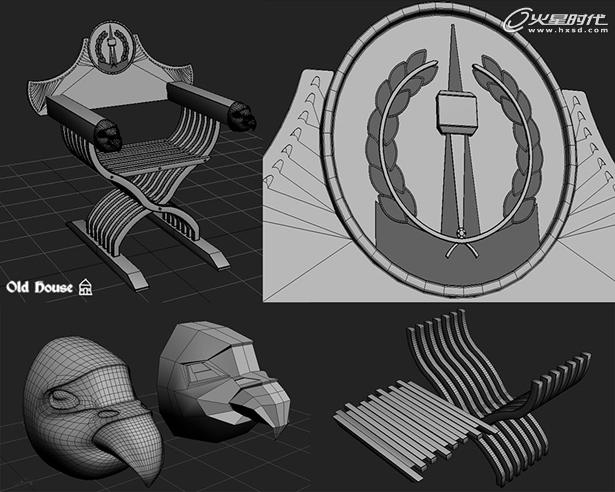 另一个重要的模型是椅子的背面。我已经找到了一些关于它的好的参考图片,所以不是所有的模型都是硬的。我试图用最简单和最干净的建模方法完成我的工作,椅子不是一个例外(主要、还是用Box模型、样条线和挤出编辑)。(图04)