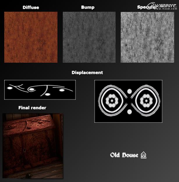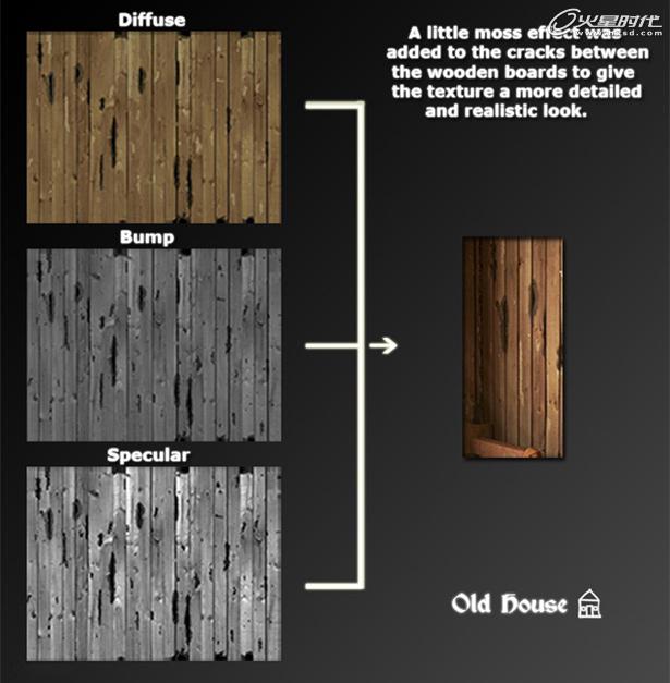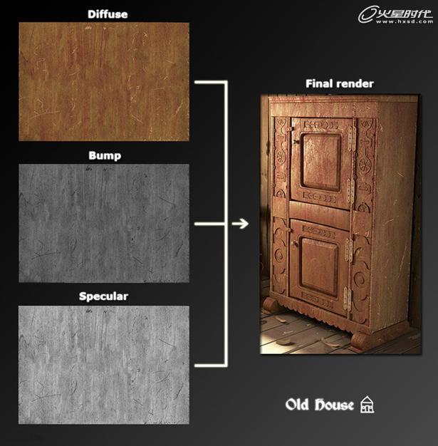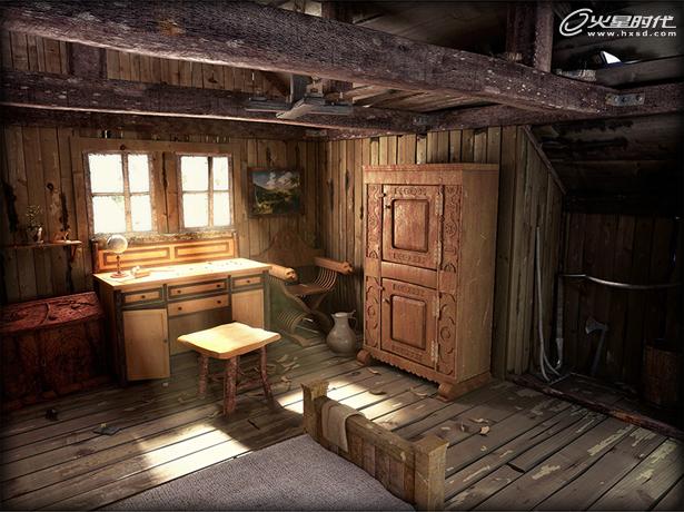 其他重要的材质就是那些衣柜,墙,瓦罐,支撑木,椅子,木橱子。下面是它们一些贴图纹理方法。(图09、10)