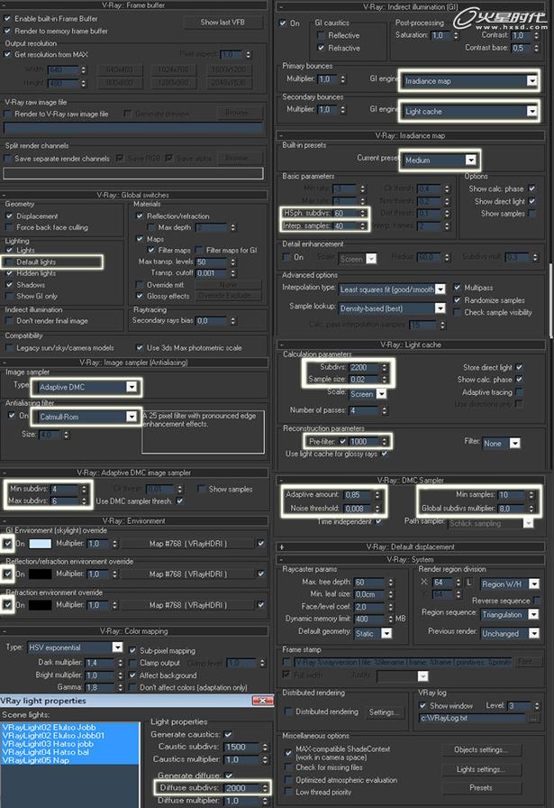 所有的灯光设置完后,我们该进入渲染部分了。你现在可能已经猜到了,我选择VRay进行渲染工作。原因是它是非常简单的渲染引擎,当然它可以帮助你实现非常真实的效果。