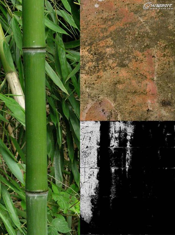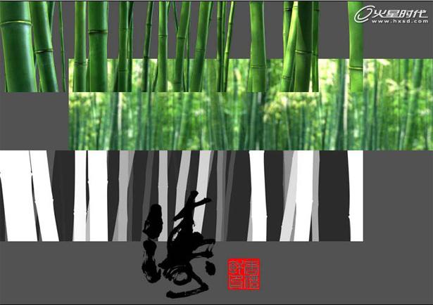 竹子所需要的贴图,已基本完成,接下来可以把图贴至模型上试试效果了。