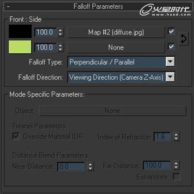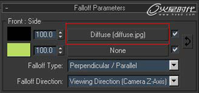 点击第二个材质球Diffuse Color通道的Falloff,进入下图内的界面,并点击红框内的Diffuse栏。(图30)