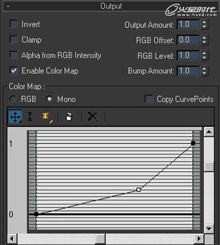 进入Bitmap属性内。在Output栏内,勾选箭头所指的Enable Color Map选项,即可编辑灰色部分的曲线。(图31)
