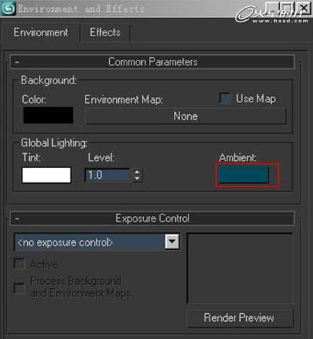 此时按8,弹出环境面板,并把下图红框内的Ambient颜色改为图中的颜色。这等于是给场景打了环境光。(图35)