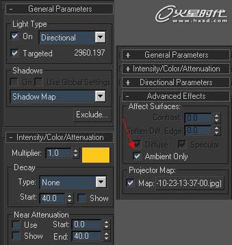 我把主灯在附近复制了一个,以作为补灯,并勾选了 Advanced Effects下的Ambient Only,属性如下。(图42)