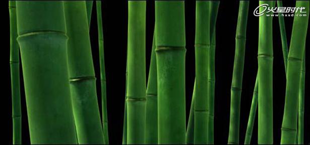 现在再把这三个材质球随机赋予镜头内的竹子们,接下来可以进入灯光部分的工作了。或许各位会觉得,调节这三个材质球,让竹林稍微有变化,效果不太明显。但我想表达的是,细节是非常重要的,一张作品优秀与否,许多时候就是由细节决定。你把每个部分都做好一点点,做细致一点点,考虑的多一点点,当所有的一点点百川汇流的时候,你的作品就会有了质的飞跃。