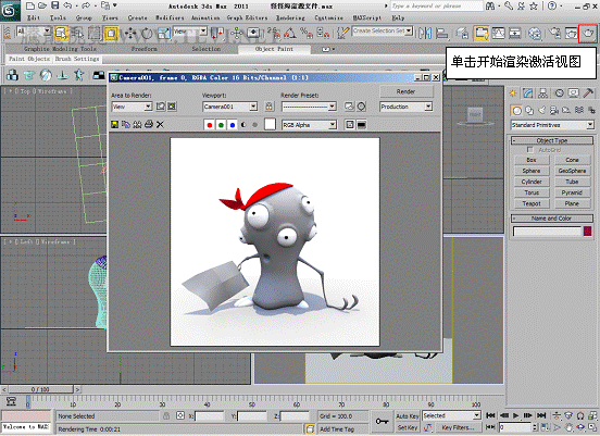 (2)激活Camera001视图,然后渲染该视图。
