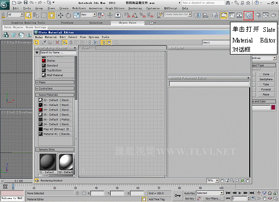 提示:Material Editor按钮为下拉式按钮,单击