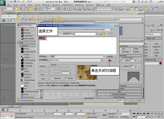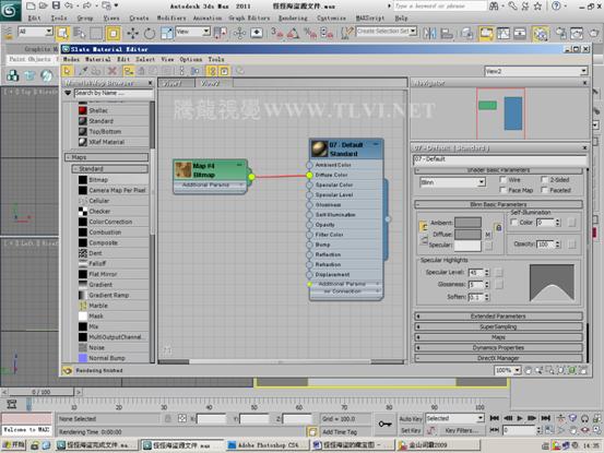 (13)将当前编辑材质赋予“地图”对象,渲染Camera001视图,可以看到材质的效果。