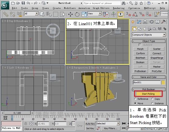 (21)激活Start Picking按钮,然后在视图中单击Line001对象。